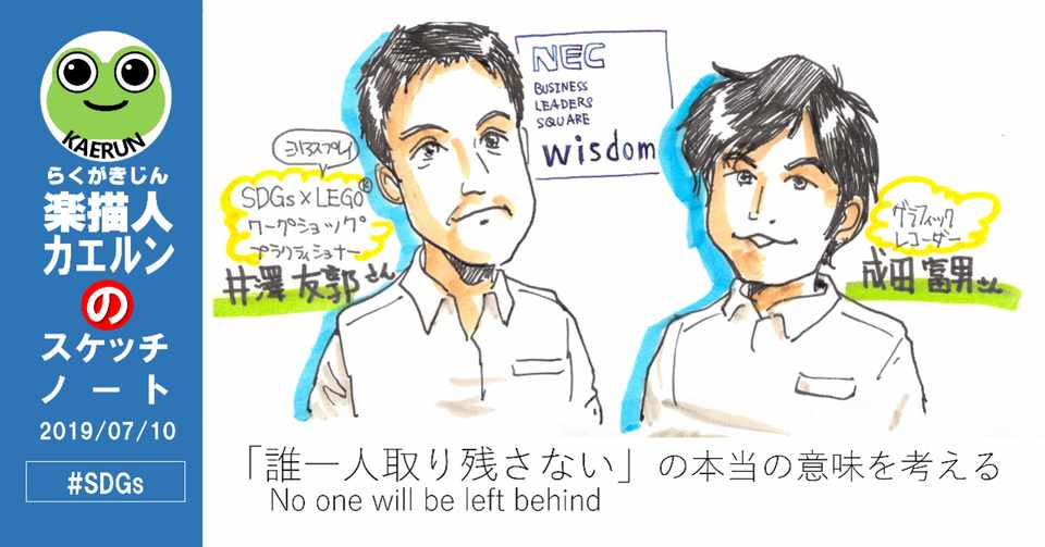 誰一人取り残さない No One Will Be Left Behind の意味を考える Nec Wisdom主催 Sdgs Legoseriousplay 実践ワークショップ 楽描人カエルン Kaerun On Line On Air Doodler Note