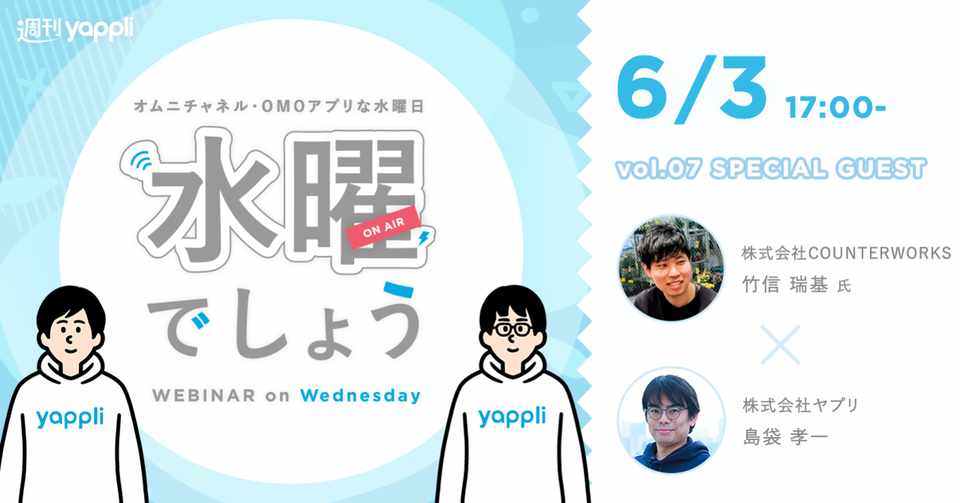 第7回 週刊ヤプリ水曜でしょう フィジカルな店舗小売が意味を変える中で 商業施設がどのようになるのか ゲスト Counterworks 竹信さん Yappli
