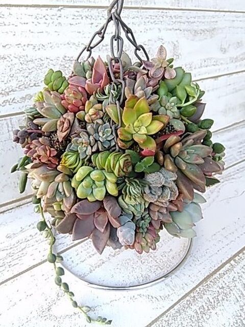 セリアの100均ハンギングバスケットで作る カラフル多肉ボール 暮らしニスタ