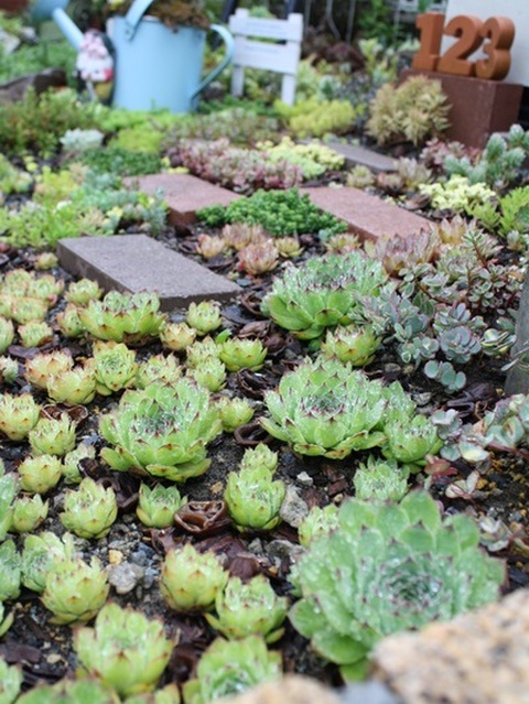 6月に作ったセンペルビウム花壇の成長 ロココのやさしい時間