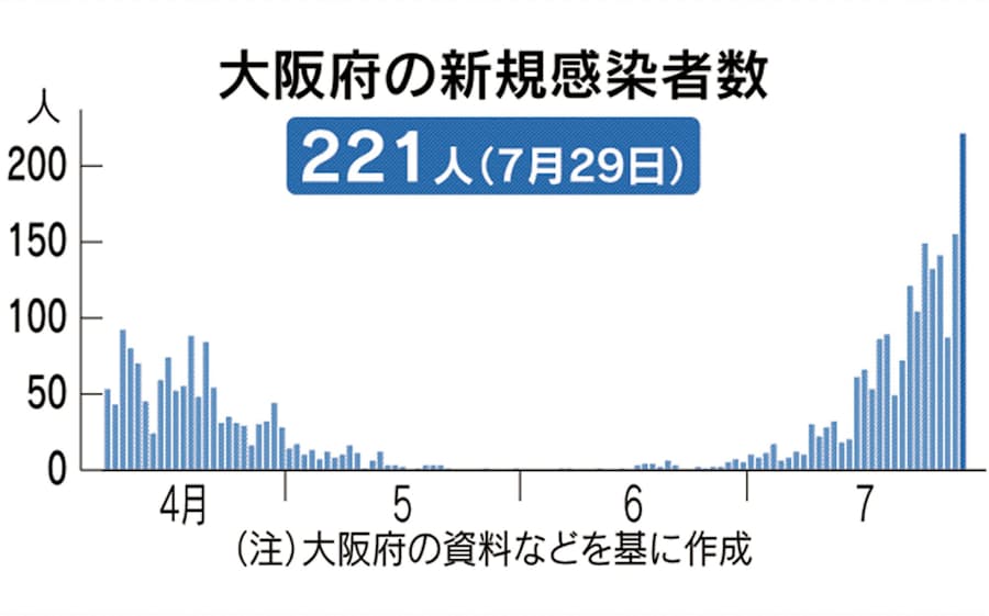 新型コロナ 大阪府 29日の新規感染者221人 過去最多 日本経済新聞