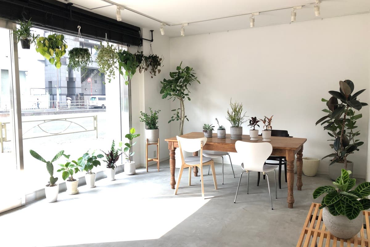 植物と古材のカウンターを基調としたお洒落な空間 キッチンスタジオ 女子会 ママ会 撮影などに スペースマーケット